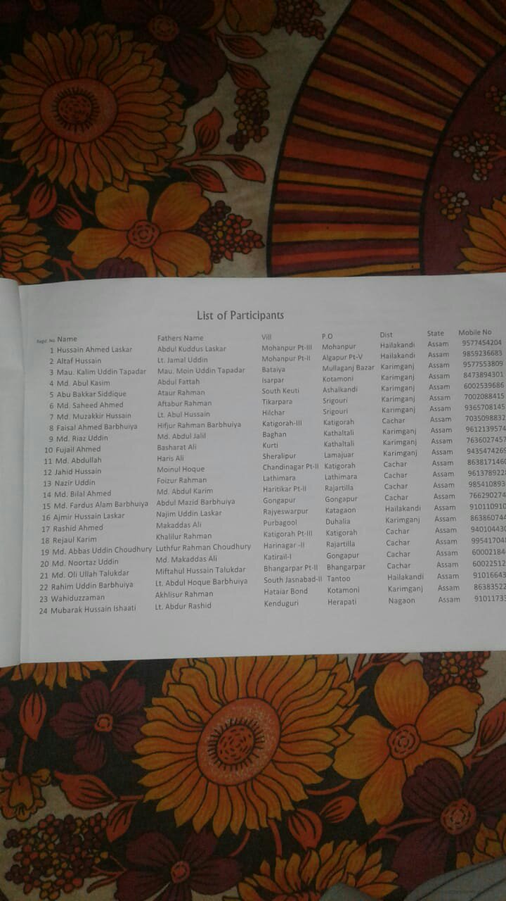 উত্তর পূর্ব ভারত এমারতে শরয়ীয়াহ ও নদ্ওয়াতুত্ তামীর কর্তৃক বদরপুরে অনুষ্ঠিত সবাহী মক্তবের মুয়াল্লিম প্রশিক্ষণে অংশগ্রহণকারী প্রশিক্ষার্থীদের তালিকা । Posted byলাফাশাইল নিউজMay 14, 2020Posted inUncategorized Share this:Share Click to share on X (Opens in new window) X Click to share on Facebook (Opens in new window) Facebook Click to share on LinkedIn (Opens in new window) LinkedIn Click to share on WhatsApp (Opens in new window) WhatsApp Click to email a link to a friend (Opens in new window) Email Like Loading... Related